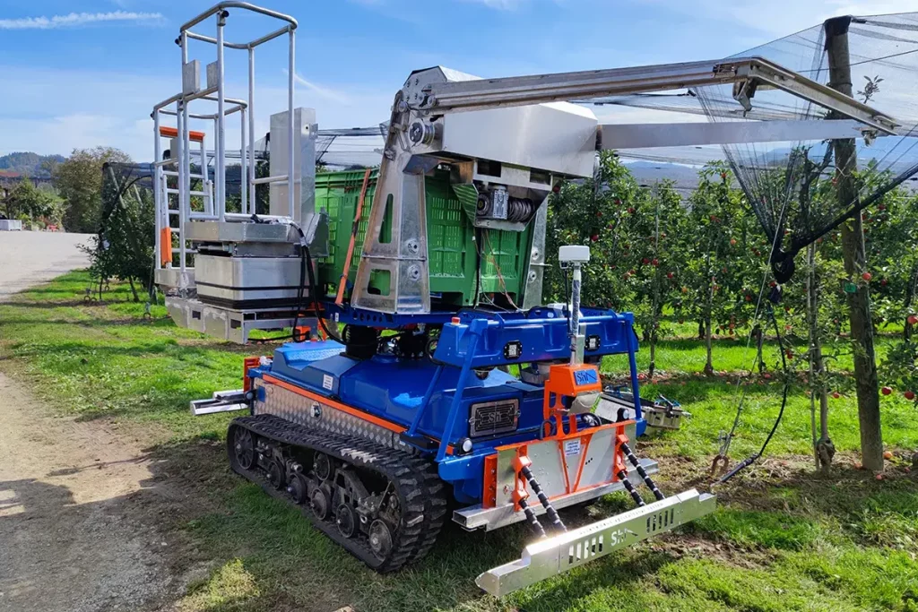 Replace your seasonal workers with our autonomous apple picker. A game-changer for high-density and intensive plantations, this hinged equipment, with its three manipulators and efficient euroagrobin distributing system, works as effectively as six human workers. Handle your harvestgently and efficiently with our revolutionary solution.